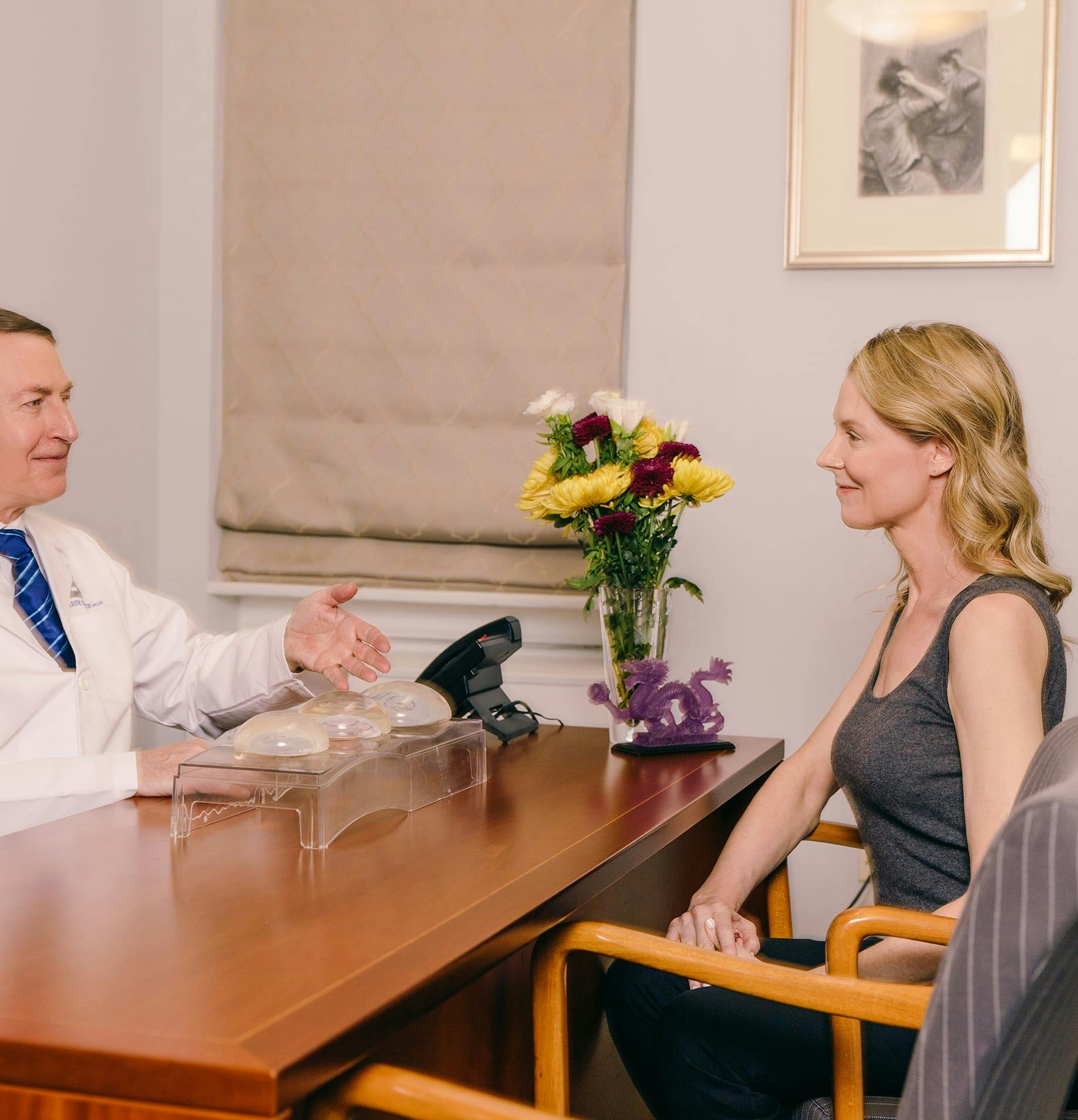 Patients are encouraged to bring photos of their desired look to ensure both patient and Dr. Bass have the same visual reference. Modeling with sample implants in clothing will also be performed at the sizing visit to help you see what you look like at different sizes. Dr. Bass will consider how your breast contour will look with your entire body to advise you on the best way to achieve your desired look. The result? Together, we’ll help you discover a beauty that’s all your own.